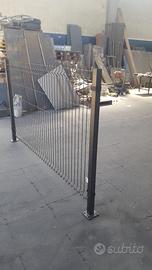 Forniamo pannelli in rete diametro 5mm verniciati ferromicaceo scuro con piantoni predisposti con piastre a tassellare. Idoneo per recintare villini, giardini, aree industriali etc... A richiesta si possono realizzare cancelli e cancelletti a misura con medesimo stile.