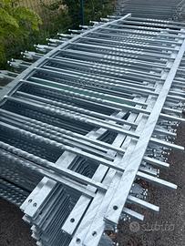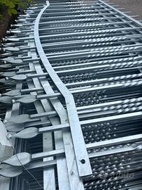 Moduli di recinzione in ferro battuto zincato a caldo composta da : - paletti in quadro pieno attorcigliati 12x12 mm - montanti orizzontali in tubolare quadro 40x40mm - spessore tubolare 1,5 mm completo di lance . Misure pannello: base 2 metri x altezza 1,2 metri. Pannello completo di caposaldo incluso nel prezzo ( da cementare o tassellare) IL PREZZO INDICATO SI RIFERISCE AL METRO LINEARE ICLUSO DI CAPOSALDI