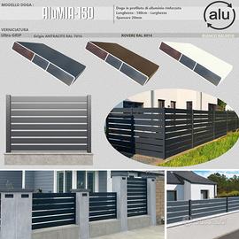 Doghe in alluminio per recinzioni , recinti , steccati , staccionate e frangivento per esterno per casa giardino terrazzi ecc. Le nostre doghe e profili in alluminio si prestano per la loro versatilità a un grandissimo numero di impieghi , sia in ambito privato che in ambito professionale. Un materiale che non richiede manutenzione, Acquistate da noi perchè non siamo rivenditori ma importatori , avrete il prezzo più basso e la qualità migliore. Visita il nostro sito alluminiofacile_com tantissimi formati e misure e colori per tante tipologie di utilizzo : Pavimentazioni Recinzioni Rivestimenti Frangisole Frangivista Frangivento Steccati divisori Cancelletti pedonali Cancelli a battente Cancelli scorrevoli Il prezzi partono da 10€ al metro in base al tipo e al colore , scontabili in base alle quantità. Chiedi una offerta , avrai sempre uno sconto sui nostri prezzi di listino. SPEDIZIONE Spediamo in tutta Italia e isole a preventivo. Ritiro in magazzino sempre possibile. ACCESSORI Forniamo tutto il necessario per il montaggio - Pali - Pannelli decorativi - Angolari per riquadro - Profili VARI PAGAMENTI Possibile il pagamento alla consegna fino a metà importo. INFORMAZIONI Per qualsiasi informazione visita il nostro sito listoniwpc_IT oppure alluminiofacile_com