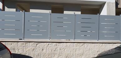 Azienda nel settore della realizzazione di recinzioni in ferro , offre i propri prodotti rispettando una qualita' artigianale nella lavorazione, con manufatti in ferro a prezzi molto concorrenziali, come esempio offriamo la recinzione oscurante come in foto realizzata in lamiera ressopiegata con lavorazione laser osenza nessun disegno ,completa di zincatura e piantone di fissaggio a un costo di 60€ mtl escluso di iva per il modello di partenza, con un altezza da terra a sopra punte di 100cm per altre dimensioni siamo a disposizione per preventivi e possibilita’ di altri modelli. Possibilita’ di spedizione e istallazione