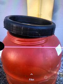 Recipiente da 220 lt , plastica forte e resistente , con tappo ispezione , carico e scarico ..possibilità di installare rubinetto in basso .