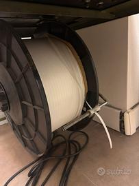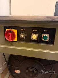 Reggiatrice semi-automatica Mod. TP-202CE Ruote pirotanti con freno di stazionamento. Alimentazione: 220v Srotolamento della reggia manuale o tramite pulsante apposito. Avviamento automatico all’inserimento della reggia.