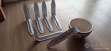 Reggimensole staffe mensole muro in acciaio smaltato bianco mm 200 x 150 larghezza mm 36, portata 25 kg, nuove mai usate vendo ad euro 2,00 CAD.uno, sono in totale n. 6, possibilità di avere anche le viti. Visibili a Levico, posso consegnare anche a Trento nord, Pergine e Cles