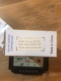 Vendo regolatore di carica per batteria 12V 24V da 30A per pannello solare. Tensione in ingresso max 41V. Comprato per sbaglio e mai usato. Ancora nella sua scatola originale.