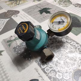 Vendo regolatore di pressione gas monostadio marca RECA modello 912 completo di manometro 0-6 bar. Portata 8-14kg/h. Pressione di esercizio da 0 a 3 bar. Il Tipo 912 è stato costruito per controllare la pressione di uscita del gas della bombola, riducendola ad una pressione appropriata per le apparecchiature. La pressione di uscita, viene regolata agendo sull’apposita manopola di regolazione.