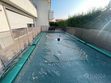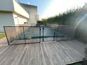 Recinzione BEETHOVEN MORBIDA misura 10 metri X 5 per un'altezza di 1,22 metri. La recinzione può essere ridotta a seconda delle vostre esigenze. Colore antracite, elegante e sicurissima. Il nuovo sistema di recinzione di sicurezza Beethoven non vi farà più preoccupare che i vostri figli possano accidentalmente cadere in piscina. La rete è smontabile; veloce e facilissima da installare. Si richiede solo una pavimentazione rigida per poter fissare a terra i picchetti. Le sezioni sono unite tra loro attraverso dei chiavistelli particolari a molle che non permettono ai bambini di manometterle e arriveranno a casa vostra già assemblate.