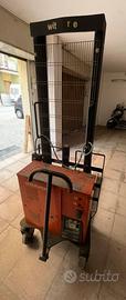 spostamento manuale, sollevamento max 1,5mt e abbassamento elettrico con batteria 100ah da sostituire.