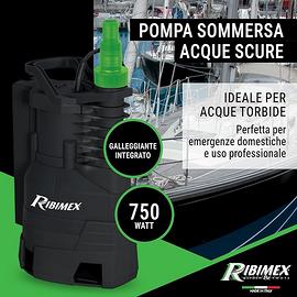 Ribimex Pompa Sommersa per Acque Scure con Particelle fino a 35 mm, 750W, Portata 13.500L/h, Profondità Max 7 m, Prevalenza 8 m, Galleggiante Integrato, Modalità Manuale/Automatica - PRPVC753AS 750 W