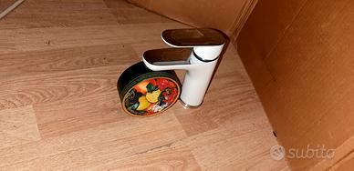 Vendo mix lavabo,colore bianco ,con parti cromate e getto inclinato a cm 10 dal corpo, diametro corpo cm 4,6 x alt. Cm 15,5 x cm 13 ,5 di prof.ta 'Vendo 29,00 x ritiro 3482221969 sandro anche su WhatsApp