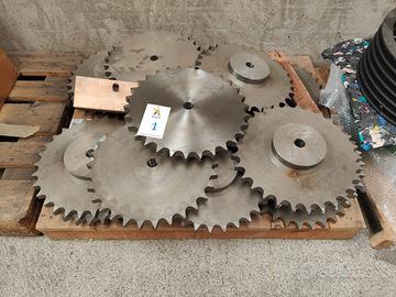 circa 10pz vari corpo supporto ritto, catena di varie misure Glieder e varie, pignoni 2N, Cuscinetti n.4 pezzi SKF/FAEG FENG-63-100-KF, pignoni n.15pz, catena doppia multipla 13M , set tenute n.2pz, anelli fissi circa 8 pz, coperchi terminale n.15pz, livellatore di precisione a Cuneo n.4pz, corpo supporto cuscinetti SKF SNL 532, pignone, pulegge n.2 pz, pignone grezzo n.16pz.