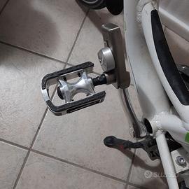Dispositivo dx e sx per diminuire il braccio della pedivella di 30, 45 e 60 mm. per facilitare la rotazione del pedale, nel recupero progressivo del piegamento del ginocchio sulla bici, per sopperire ai limiti imposti dall'innalzamento della sella. Adatto a bracci con foro filettato dx e sx 9/16" , 20 filetti/", ( foro diametro interno 13 mm. e filetto pedivella diametro esterno 14,28 mm). Alla distanza di 75 mm. dal foro, il braccio deve avere una larghezza massima di 35 mm. Una sola chiave di 19 mm. per la vite principale e una chiave di 10 mm. per la vite M 6 per la registrazione del gioco.
