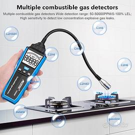 Rilevatore di Gas MESTEK Rilevatore di Perdite di Gas Portatile per Combustibile Gas Naturale Metano Carbone Gas Propane GPL Allarme Acustico e LCD Digitale per Domestico Cucina Camper -Ricaricabile