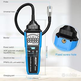 【Funzioni potenti】 Schermo di visualizzazione digitale tradizionale con retroilluminazione, funzionamento semplice del pulsante, adatto per test all'aperto o all'interno. Campo di rilevazione: da 50 a 10000 ppm (* metilalchil). Rilevamento ultra flessibile a 360°, con un tubo flessibile della sonda metallica 285mm che può regolare in modo flessibile l'angolo per rilevare perdite di tubazioni in posizioni strette. Spegnere automaticamente l'alimentazione senza funzionare per 10 minuti.