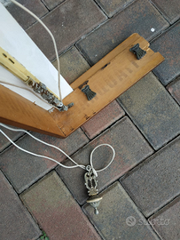 Riloga per tendaggi con bordo 200cm x 28cm. La bordatura é in legno marrone in ottime condizioni con ciondolo per tirare e stendere le tende. Trattabili