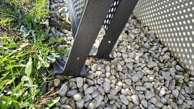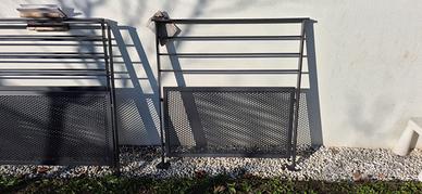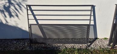 Ringhiera artigianale realizzata su misura in acciaio zincato a caldo verniciato a polvere color antracite. 4 moduli. Misure: due moduli da 371,5 cm x h 100 cm da poter unire tot 743 cm. Un modulo da 147,5 cm x h 100 cm e un modulo da 95,5 cm x h 100 cm. Realizzata nel 2018, aspetto come nuova.