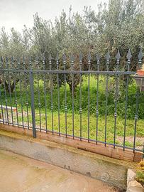 Tolgo ringhiera in ferro (PIENO) battuto, lunghezza 11 metri lineari , altezza 115 cm. Larghezza dei pannelli 150cm cad.1. No affaristi grazie. Prezzo 90 euro metro lineare.