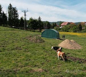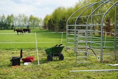 Sono in vendita in Polonia, Regno Unito, Europa e Paesi scandinavi. I rifugi per pascoli sono recinti di alta qualità per bovini, cavalli, capre, maiali e altri animali. I nostri prodotti offrono un'eccellente protezione da calore, vento, tempesta, pioggia e neve. I recinti sono ampi e possono essere utilizzati anche per conservare il mangime e altri oggetti necessari per l'allevamento. Il telaio del recinto è realizzato in tubi d'acciaio zincato a caldo con doppie traverse per resistere a condizioni climatiche estreme e il tessuto è in PVC di alta qualità del peso di 750 g. I recinti per animali domestici sono disponibili in diversi tipi di costruzione, tessuti, forme e dimensioni. La semplicità di costruzione per l'autoassemblaggio è un altro vantaggio dei nostri prodotti.