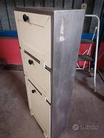 PICCOLO MOBILE RIPOSTIGLIO CON CASSETTI A VASISTAS.STRUTTURA IN ACCIAIO E SPORTELLI IN ALLUMINIO VERNICIATO .