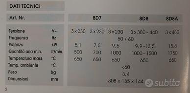 Alimentazione: 230V trifase e 400V trifase.