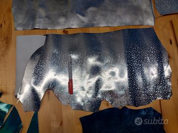 Piccolo ritagli di pelle (bovino o capra) con varie finiture, ideali per piccoli lavori e realizzazione inserti. vendute in blocco.