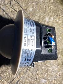 Sensore di presenza a raggi infrarossi ad incasso in controsoffitti - IP20. Installazione incasso in controsoffitti Alimentazione 220÷240V c.a. 50Hz Pilotaggio intelligente del relè "ZERO CROSSING" Diametro foro d’installazione Ø 70mm Potenza massima pilotabile: Lampade incandescenza 2000W Lampade fluorescenti non rifasate 480W Lampade fluorescenti rifasate in parallelo 250W Lampade CFL/LED (230V) 7W ÷ 23W max 8 lamp. Angolo di rilevamento 360° Distanza di rilevamento max 14 m Regolazione della soglia crepuscolare 30 – 200 Lux N° 10 impostazioni regolabili: 5, 10, 20, 40, 80, 160 secondi / 5, 10, 20, 40 minuti