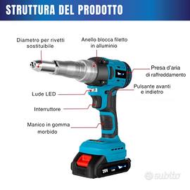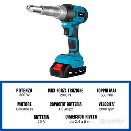 Rivettatrice a batteria 20V da 2,4 a 5mm Brushless