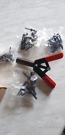 Rivettatrice per rivetti in plastica nuova aperta solo per fare le foto, sono inclusi anche i rivetti.