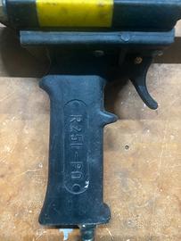 Corpo in materiale composito rinforzato con fascia giallo/nera antiscivolo, impugnatura ergonomica, mandrino in buono stato.