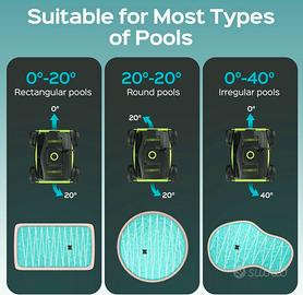 Adatto a tutti i tipi di piscine (pendenza <15°): Con ugelli regolabili, questo robot piscina pulisce piscine interrate/fuori terra (rotonde/rettangolari), raggiungendo ogni angolo