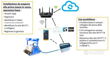 Robot Pulitore per Piscina Maytronics Dolphin Zefiro SF60 IOT Garanzia 3 Anni Ufficiale Maytronics Dolphin Italia Pulizia Fondo, Angoli, Pareti & Linea per Piscine Fino a 15 Mt Tecnologia IOT Wi-Fi Bluetooth APP MyDolphin Plus (Always Connected) Cartucce Filtro a Telaio Rigido con Estrazione dall' Alto Grado di Filtrazione Fine & Grossolano (50 o 100 Micron) Ciclo di Pulizia Programmabile Settimanalmente 2 Motori + 3° Spazzola Attiva (Massimo Grado di Spazzolamento) Tecnologia di Scansione Vasca Avanzato CleverClean (Brevettata) Tecnologia Smart, Air Sensor & Wall Detector Sistema di Navigazione Giroscopico Cavo Anti Aggrovigliamento con Swivel Technology (Brevettato) Spazzole Combinate per Maggiore Grip in Salita di Parete Caratteristiche Tecniche: Tipo di Pulizia: Fondo, Angoli, Pareti & Linea di Galleggiamento Forma Piscina: Rettangolare, Ovale, Circolare, Quadrata & Forma Libera Fondo Piscina: Piatto, Pendenza Dolce o Composta & Punta di Diamante Rivestimento Piscina: Liner, Poliestere, PVC Armato & Cemento Verniciato Rivestimenti Mosaico, Piastrelle & Vetroresina: Si, se dotato di Spazzole Wonder. (Visionare l'inserzione nella categoria Robot per Piscine Mosaico, Piastrelle & Vetroresina) Tecnologia Bluetooth: Si Robot Smart: Si Voltaggio Box Motore: + 24 V CC Tensione in Uscita: Meno di 30 VCC Grado di Protezione: IP 54 Potenza Assorbita: 150 Watt N° Motori: 3 (1 Aspirazione + 2 Trazione) N° Programmi di Pulizia: 1 Tempo Ciclo di Pulizia: 2,5 h Spegnimento Automatico a Fine Ciclo: Si Ciclo di Pulizia Programmabile Settimanalmente: Si Cartucce Filtro a Telaio Rigido: Si Superficie Filtrante: Cm. 7750 3° Spazzola Centrale Attiva: Si Tecnologia di Scansione Clever Clean (Brevettato): Si Tecnologia Wall Detector: Si Tecnologia Air Sensor: Si Portata Pompa: 17 m3/h Peso: Kg. 11 Trasmissione: Cinghie Spazzole Combinate per Maggiore Grip in Risalita: Si con Anelli Wonder Lunghezza Cavo Galleggiante: Mt. 18 Sistema Spiaggia: Si Consegna Espressa in 24/96
