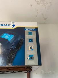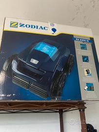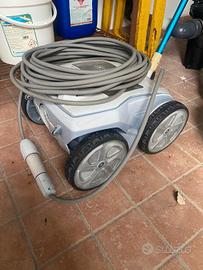 Robot pulitore piscina fondo e pareti con filtro ricambio. Possibilità di accensione da remoto, perfettamente funzionante. In vendita causa vendita casa. Solo colore un po’ sbiadito causa cloro piscina