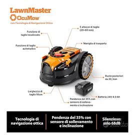 LawnMaster OcuMow™ Robot tagliaerba senza filo perimetrale e tagliabordi, taglia superfici di prato da 200 a 300 m² con 2 cariche complete della batteria, Evita gli ostacoli, basso livello di rumore usato una volta , acquistato ad agosto quindi ancora in garanzia, pagato 500€