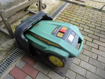 Vendo robottino John Deere Tango E5 perfettamente funzionante, compatto e silenzioso. Adatto a superfici fino a 1800 m², larghezza taglio 300 mm ed altezza regolabile, dotato di sensori x evitare ostacoli, ruote anteriori girevoli a 360°. Inoltre gestisce pendenze fino al 30% Stazione di ricarica, batteria agli ioni di litio , navigazione a traiettoria casuale