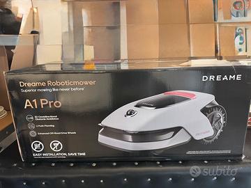 Vendesi robot tagliaerba nuovo ancora imballato, causa doppio acquisto; marca DREAME modello A1Pro, completo di carica batteria automatico, navigazione senza fili