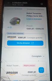 Robot tagliaerba Philips serie 3000 nuovo, solo provato per circa un'ora, non adatto al mio giardino, completo di case, alimentatore, 150 metri di filo perimetrale, picchetti e manuali. Molto potente e veloce a tre modalità di taglio e velocità in base allo stato dell'erba, ha il GPS per memorizzare percorso e ostacoli, gestibile con bluetooth e wifi. vero affare prezzo amazon 689,00€
