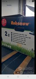 Robot taglierba, marca Robomow, utile per giardini di grandi dimensioni. Completo di stazione di ricarica, filo per delimitare il confine del giardino e picchetti per fissare il filo. Usato circa 4 anni, funziona perfettamente.