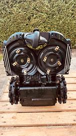 Copertura di taglio fino a 3000mq. con larghezza di taglio di 42 cm doppia lama e pendenze massime gestibili del 45%. È dotato di un piatto flottante con lame decentrate, 2 motori brushless e 2 motori brushless per le ruote, connettività Wi-Fi, Bluetooth e GSM integrata per la gestione tramite app. Interfaccia utente tramite touchscreen a colori HD.