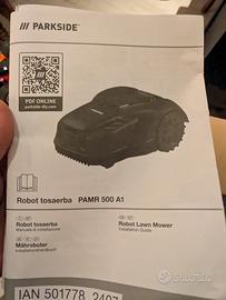 robot Parkside per 500mq, comprato e utilizzato solo l'anno scorso primavera-estate , completo di batteria da 2ah.perfetto. completo di lame nuove e base di ricarica.