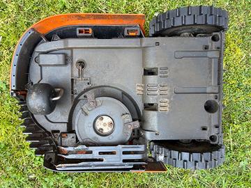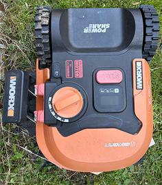 Robot Tagliaerba Worx Landroid M500 per giardini fino a 500mq. Funziona con filo perimetrale (100m filo universale 16,49€) Lame nuove originali le fornisco io La batteria deve essere sostituita (originale 39.99€ in internet). Il guscio presenta una frattura (visibile nelle foto) dovuta ad una forte grandinata, che non influisce sul corretto funzionamento del robot, peraltro molto robusto ed efficace.