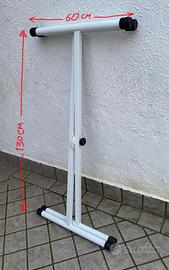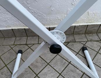 Vendo per inutilizzo, robusto supporto a X in acciaio bianco regolabile a diverse altezze e richiudibile.