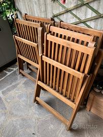 Robusto tavolo da giardino in legno per 6 persone allungabile completo di sedie con schienale e braccioli