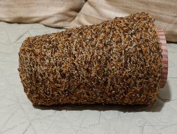 Rocca di filato tipo bouclé, toni del marrone , così com'è pesa 200 gr