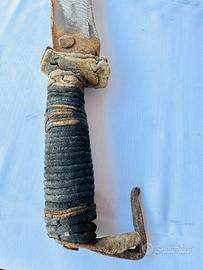 Roncola vintage in ferro battuto, manico in pelle originale.