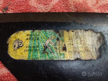 -Vendo roncola marca ( ARIETE ). Lo stato di conservazione generale è buono. Sono presenti normali segni del suo utilizzo. La peculiarità di questo utensile è che ha un doppia lama,x un doppio utilizzo. Misure: Lunghezza tot 40cm, largo 16,5cm. Prezzo: 30€ Si effettuano spedizioni a carico del destinatario.