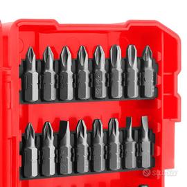 - Inserti 25mm: 3x PH1, 4x PH2, 3x PH3, 2x PZ1, 3x PZ2, 2x PZ3, SL3, SL4, SL5, SL5.5, SL6, SL7, H3, 2x H4, H5, H6, T10, T15, T20, T25, T27, T30, T40