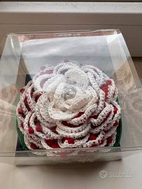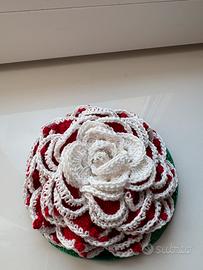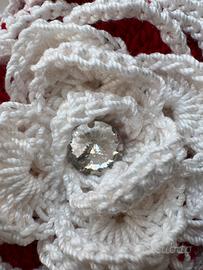 Bellissimo fiore lavorato all'uncinetto, nei colori bianco e rosso. Perfetto come decorazione o spilla.