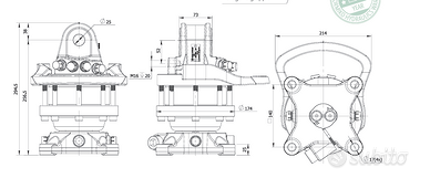 Rotatore progettato per applicazioni impegnative, con carico statico massimo di 45 kN e dinamico di 25 kN. Offre una coppia di 1200 Nm a 25 MPa e richiede una portata d’olio di 20 l/min.