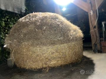 Vendo causa cessione animali rotoballa di fieno primo taglio (maggengo). La balla è stata aperta e parzialmente utilizzata per nutrire delle caprette, come visibile in foto. Il fieno rimanente è sano, asciutto e conservato sempre al coperto, ideale per chi ha piccoli ruminanti, asini o cerca fieno per lettiera e pacciamatura. Ritiro a carico dell'acquirente a Sissa Trecasali