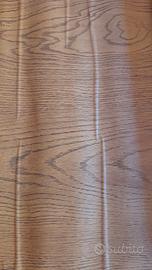Vendo rotoli adesivi per rivestimenti, come da foto, larghezza 45cm e lunghezze diverse. Sono 100% PVC, quindi lavabili. I tre rotoli interi, quelli ancora sigillati, colore più chiaro (castagno), sono lunghi 200cm ed in più, dello stesso colore, ci sono due tagli, uno da 100cm e l'altro da 25cm. In più, c'e un taglio più scuro, tendente al rossiccio (mogano/ciliegio) che misura 130cm. Il prezzo di vendita di un rotolo intero 45cm×200cm sarebbe 7€, cioè 3,50€ al metro, ma vendo tutto in blocco a 20€. Come si può vedere dalle foto, sul retro é stampata una griglia numerata per mezzo della quale si può tagliare la misura che occorre con precisione.
