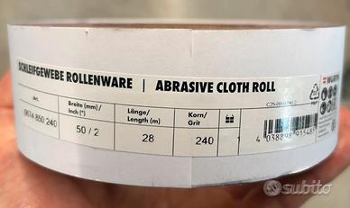 ROTOLO DI TELA ABRASIVA PER SISTEMA DI SROTOLAMENTO. TELA SMERIGLIO BOBINA 50MMX28M P240. Nuovo mai usato ancora imballata. Massima serietà no perditempo. Sono disoccupato grazie dell’aiuto